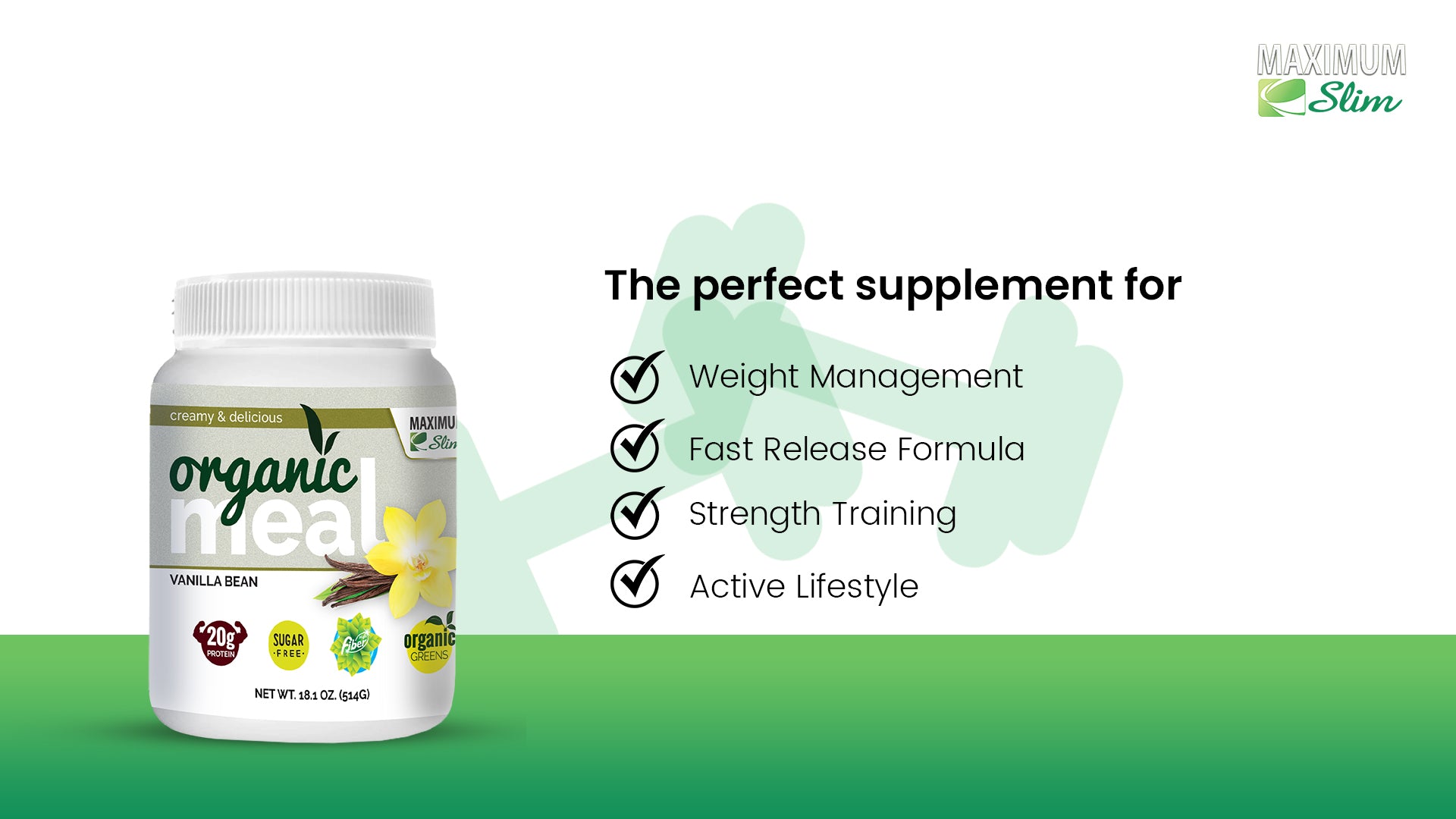 Get the Results you Want! It's a cold hard fact that you cannot control your hunger and calorie intake, you cannot lose weight. Maximum Slim Vanilla Meal Replace makes it easy! Customer has been reporting EXCELLENT TESULTS with Maximum Slim Plus, with our new and improved flavor you will get 20g of 100% whey protein. The new all whey formula gives Maximum Slim Vanilla Meal Replacement a velvety smooth, rich and thick texture. Smooth, creamy and delicious 20g high-quality, all whey protein to help build lean muscle when combined with exercise Convenient and affordable! Replace 1 or 2 meals a day with Maximum Slim Vanilla Meal Replacement This can help you see amazing results when combined with a healthy lifestyle and physical activity. In addition to feeling fuller between meals, you'll get daily nourishment with whey power, fiber and 22 vitamins and minerals. Maximum Slim Vanilla Meal Replacement makes a great base for juices and smoothies. Or keep it simple and just add water! With Maximum Slim Meal Replacement you'll never have toe "cheat" on your plan... but it might FEEL like you are! Most meal replacement shakes do not fill you up enough to get to your next meal. Our unique blend of protein and fiber helps get you the results that you seek. You wont find it in any other shake on the market. It is recommended to take each servings with a full glass of water for best results. Green Coffee Bean Extract. It's recommended to take each serving with a full glass of water for the best results. Remember that combining Premium Garcinia Cambogia PowerSlim with Green Coffee Bean Extract with a healthy diet and exercise may improve your results! Disclaimer: Consult a physician before starting any weight loss program, Maximum Slim is recommend to be used in conjunction with a healthy diet and exercise program. Results vary depending upon starting point, goals, time and effort. Consequently, Maximum Slim does not guarantee results. Important: Use only as directed. These statements have not been evaluated by Food & Drug Administration. This product is not intended to diagnose, treat, cure, or prevent any disease. As individuals differ, their result will differ, even when following the same method. This product is recommended for ages 18 years and older. This product is suitable for both women and men, but it is not recommended for pregnant or breast-feeding women; cardiovascular disease, stroke patients and any other related diseases.. ****Be sure you are getting real benefits from the real product, for your safety, avoid all foreign based website and vendors attempting to sell Maximum Slim Products.. ****